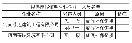 近期,市住建局通过受理核验有关企业提交的整改资料,发现河南苍迈建筑工程有限公司、河南茶瑞建筑有限公司2家企业3名人员提供虚假证明材料,现予以通报,异常标注问题不予通过,一个月内不再受理异常资料。
